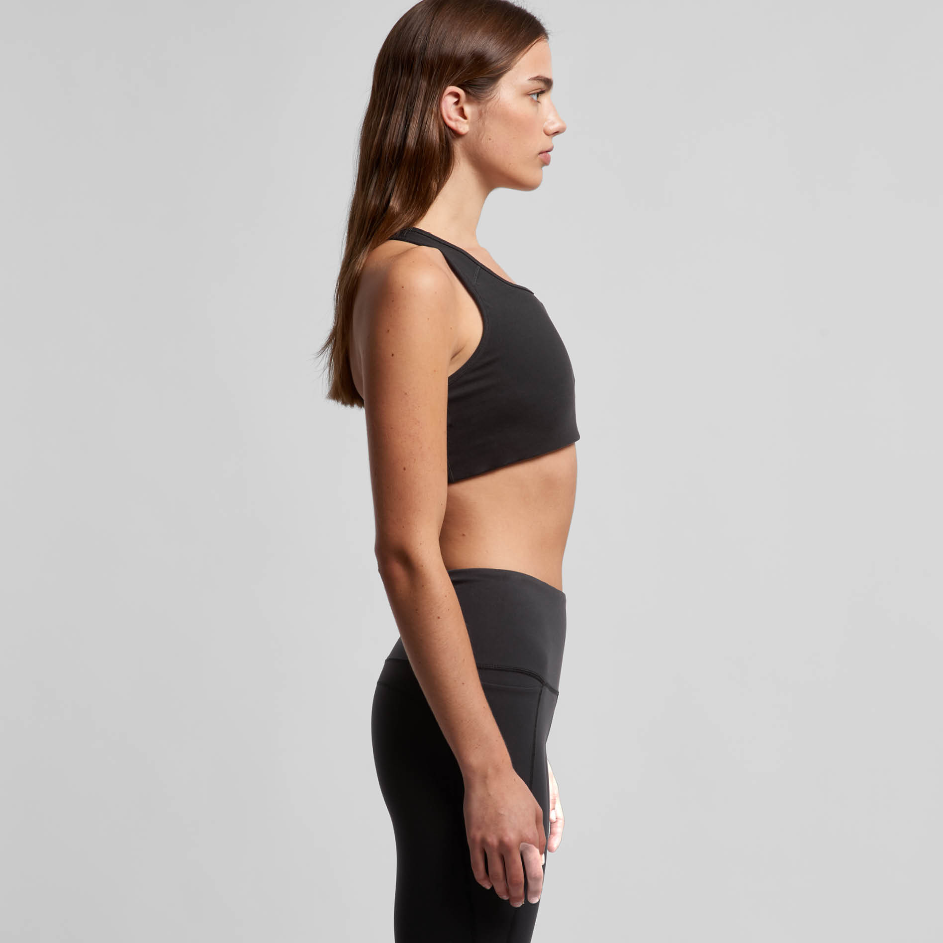 Matte finish, continuous removable bust cup, racer back, internal elastic
